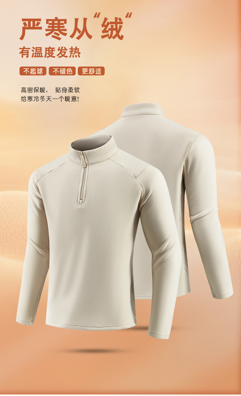 高弹一体可绒保暖外穿半高领拉链纯色长袖T恤KD4-88191