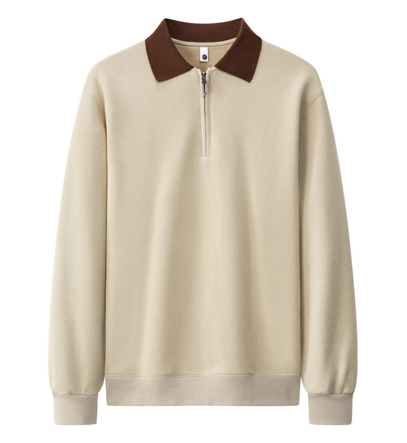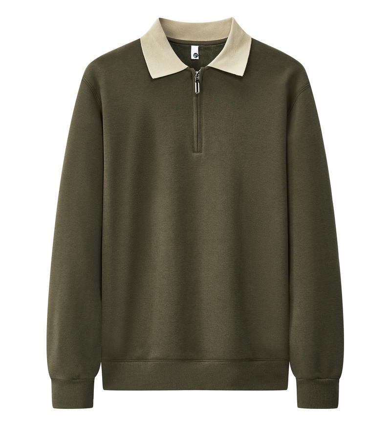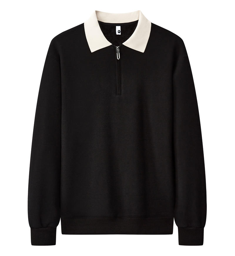 加厚超柔半拉锁拼色翻领长袖POLO衫25A083