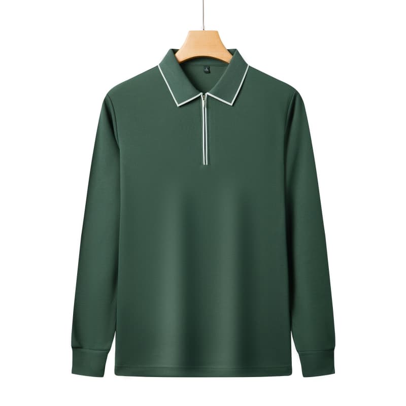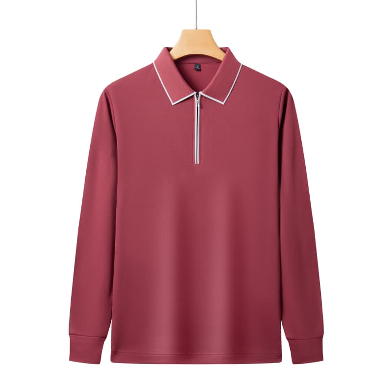 240g40支双纱亲肤绒半拉链拼色翻领长袖POLO衫5903