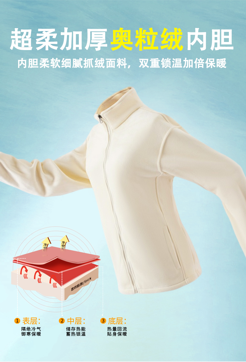 防刮75D针织布摇粒绒内胆三合一冲锋衣T98女款