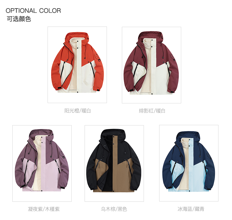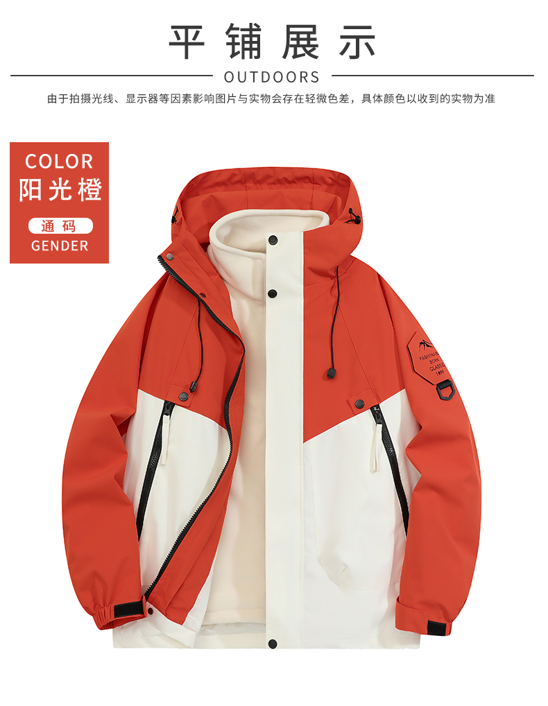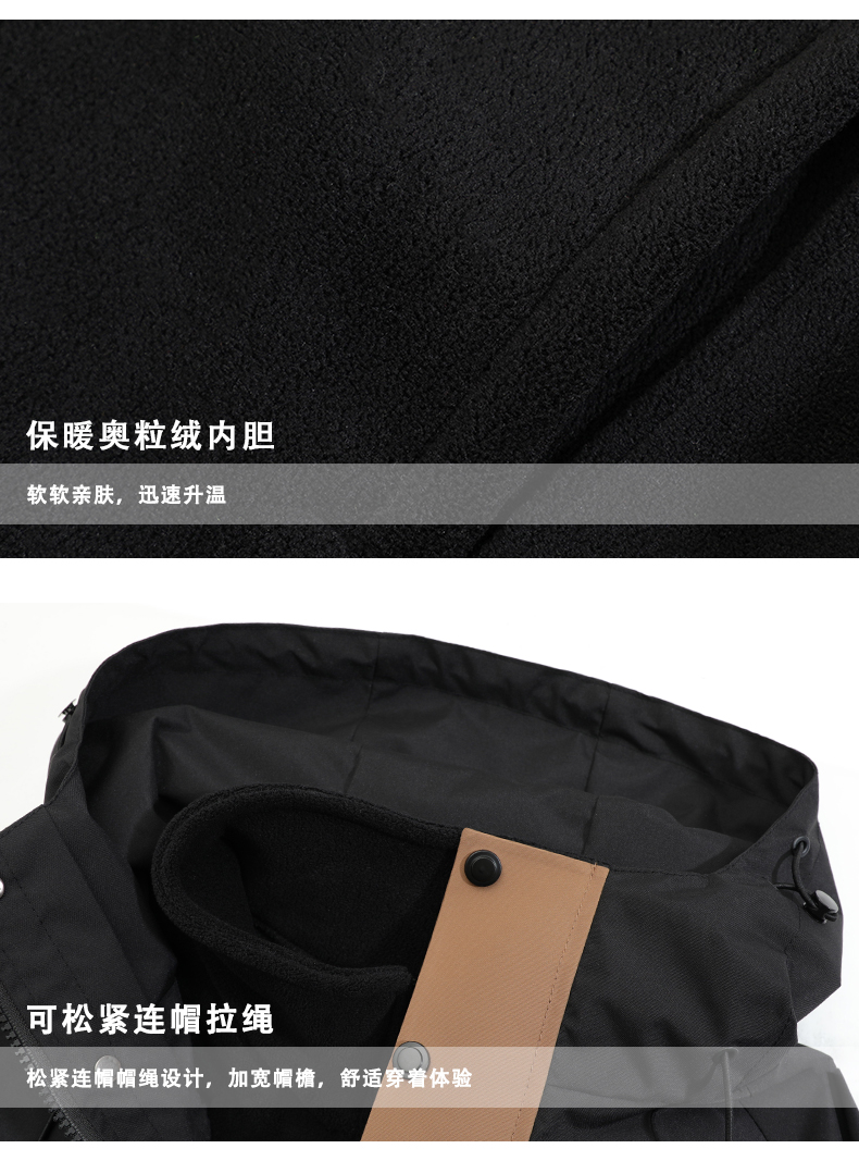 摇粒绒保暖内胆纯色连帽三合一冲锋衣情侣款KS1-962518通款