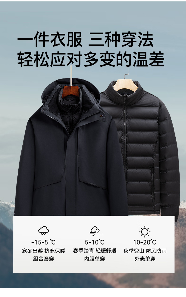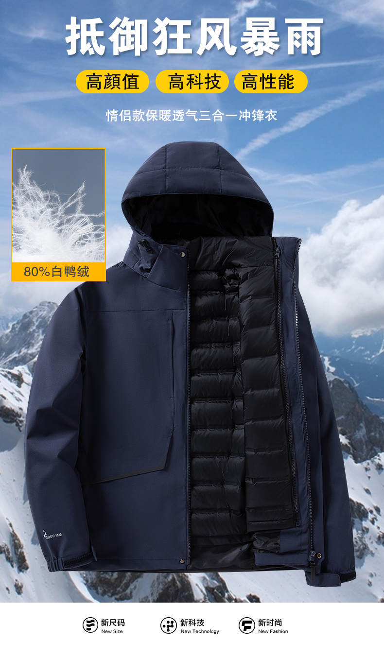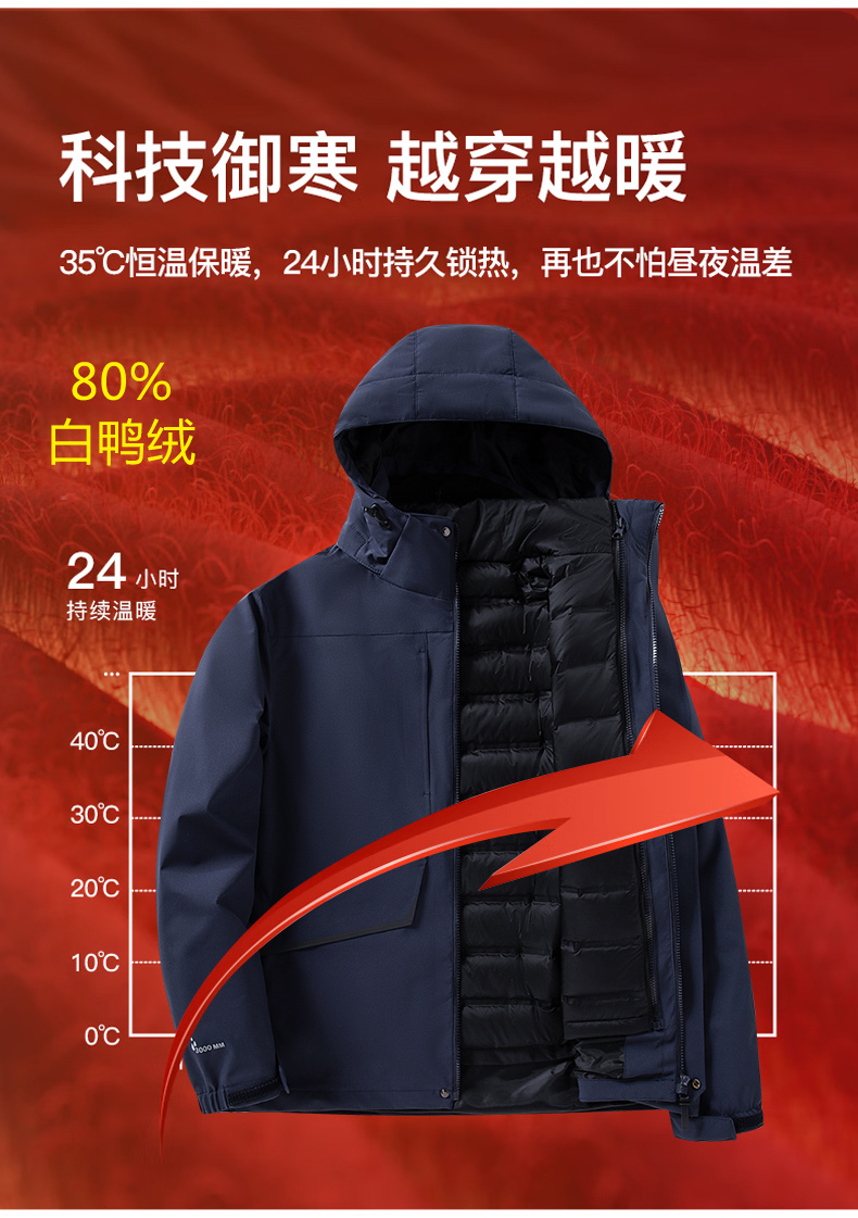 连帽可拆卸羽绒内胆三合一冲锋衣女款KD-G2002-1