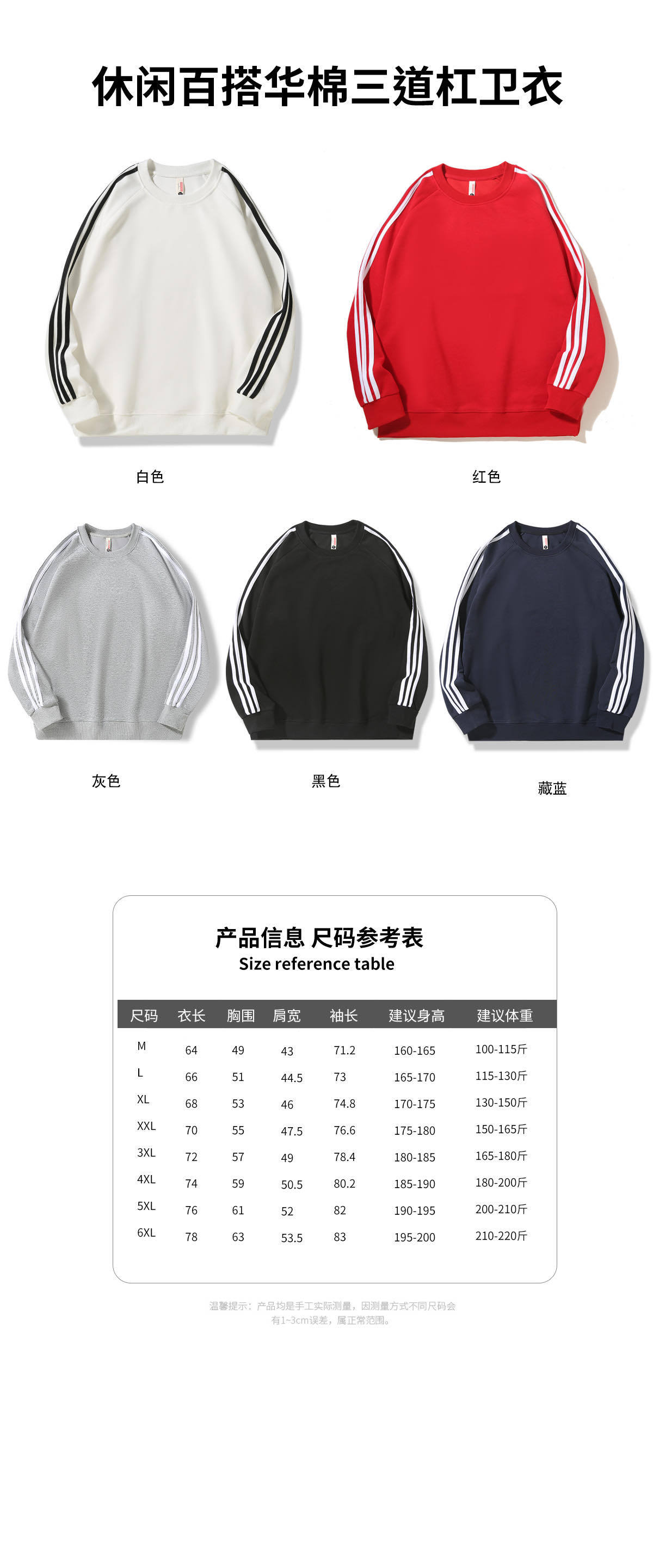 290G三道杠复合牛奶丝纯色圆领长袖卫衣BC1-三道杠常规款