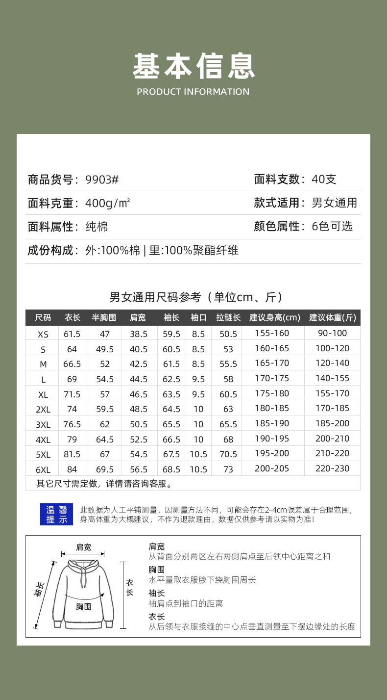 500g高品质曼巴棉复合连帽拉链卫衣G21-U-XWY19