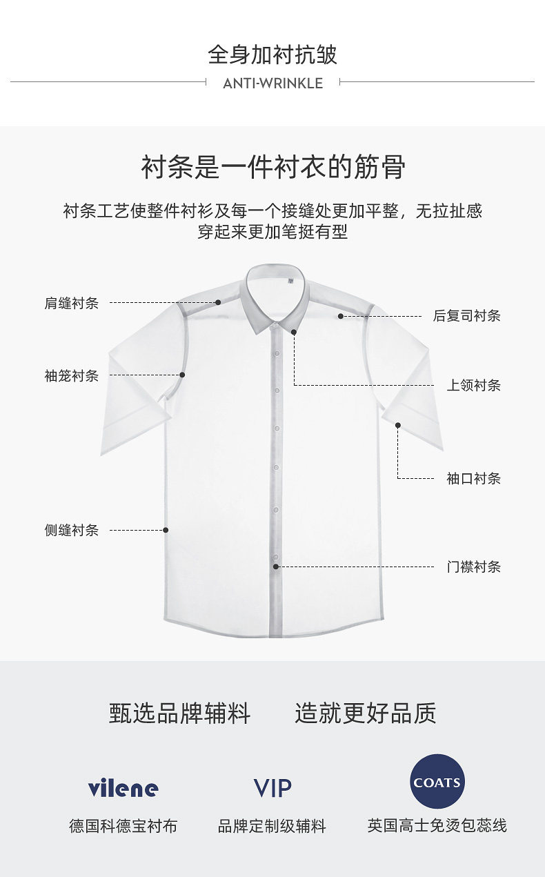 男式正装短袖全棉免烫衬衫