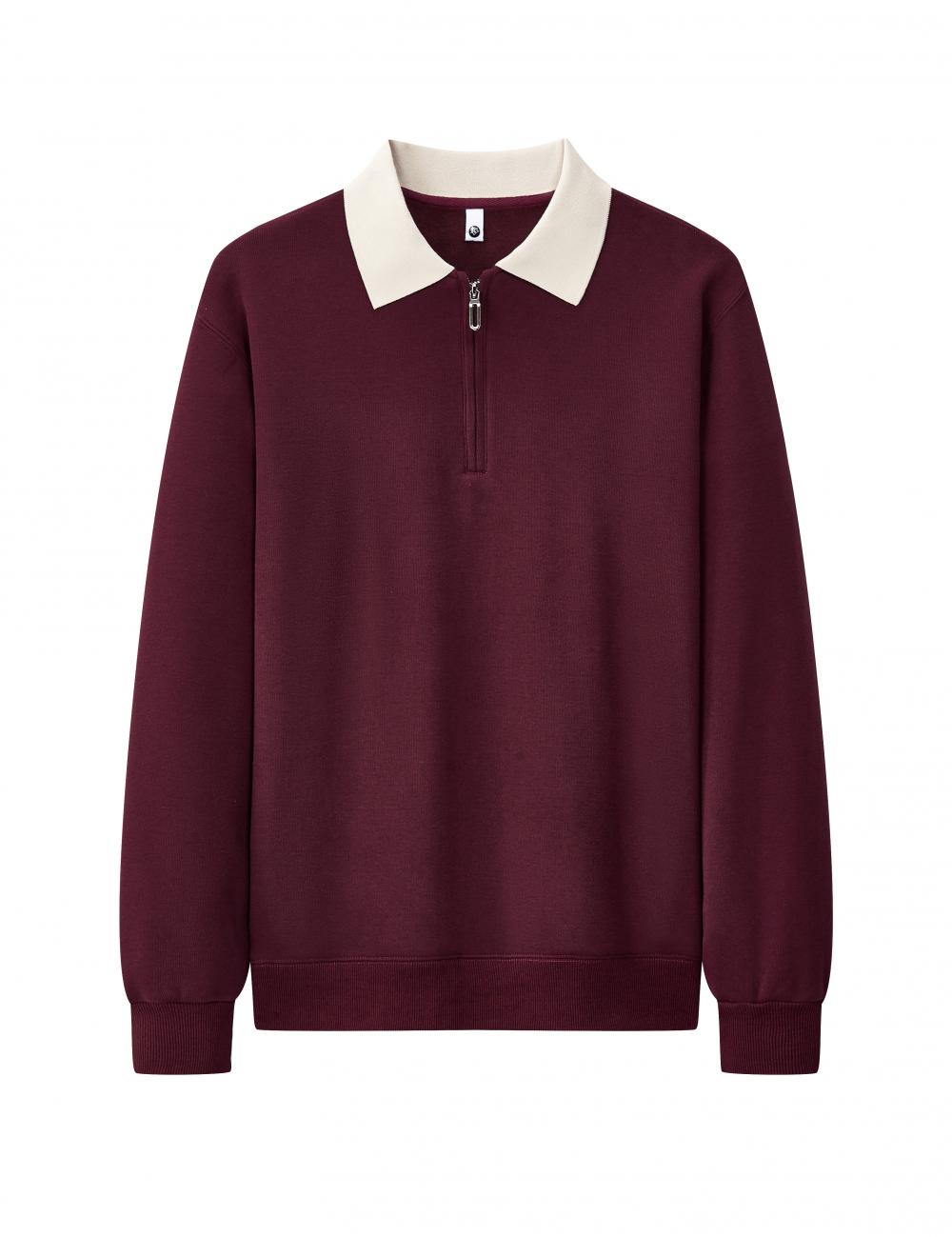 加厚超柔半拉锁拼色翻领长袖POLO衫25A083