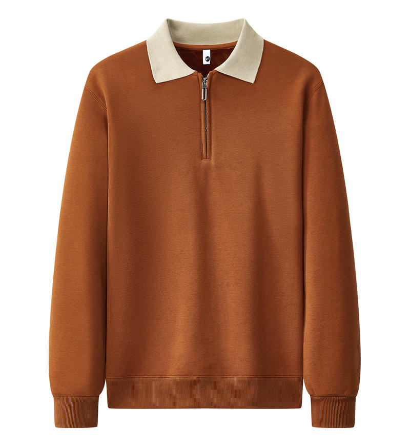 240g40支双纱亲肤绒半拉链拼色翻领长袖POLO衫5903