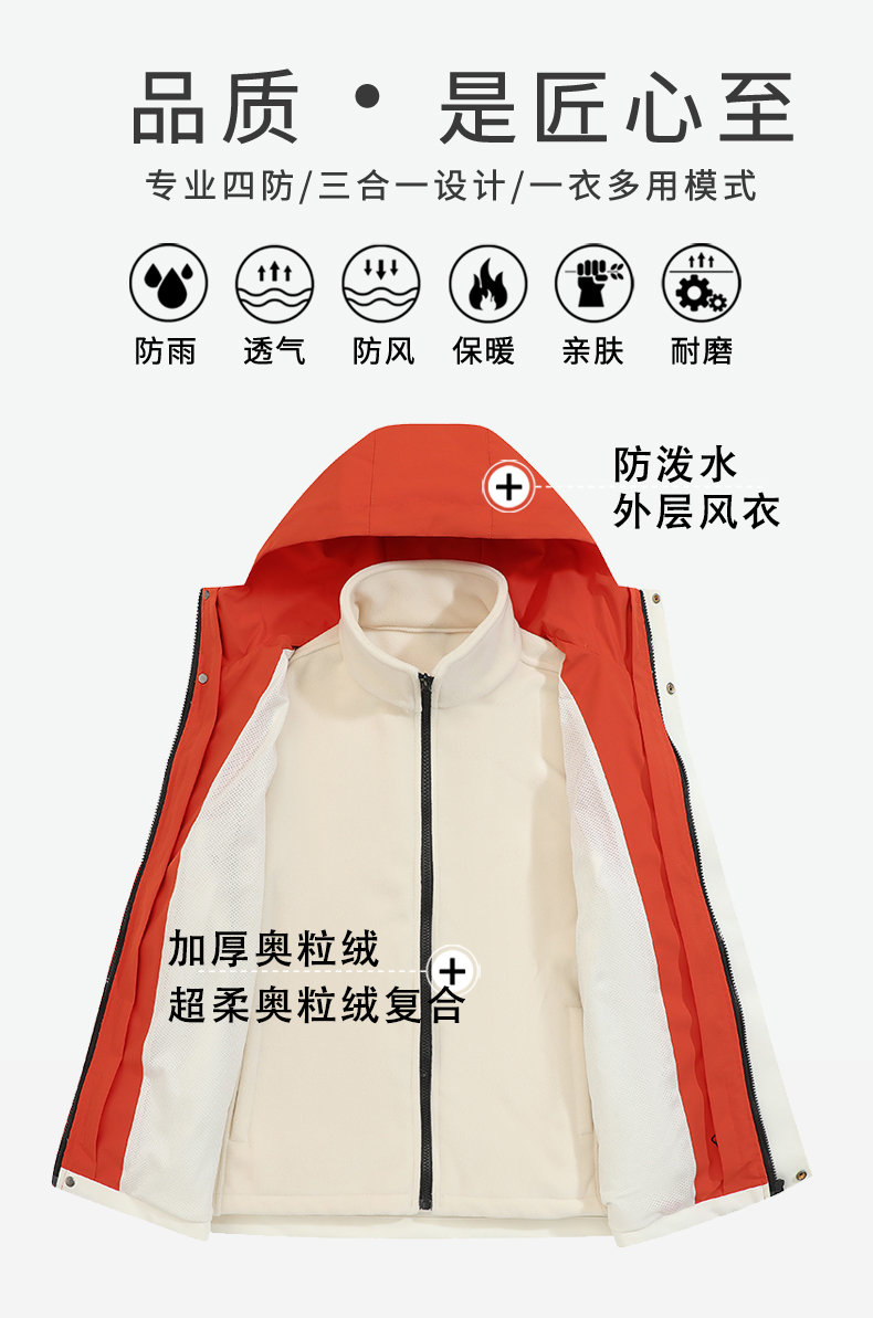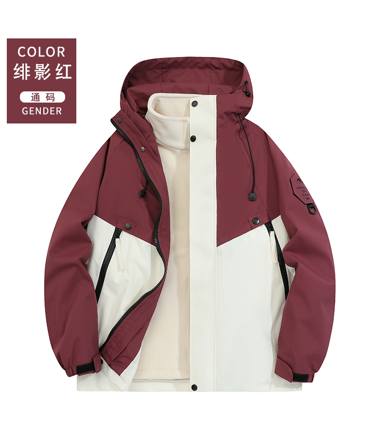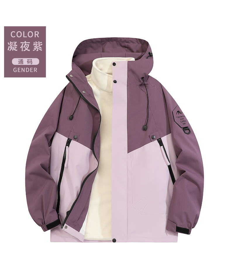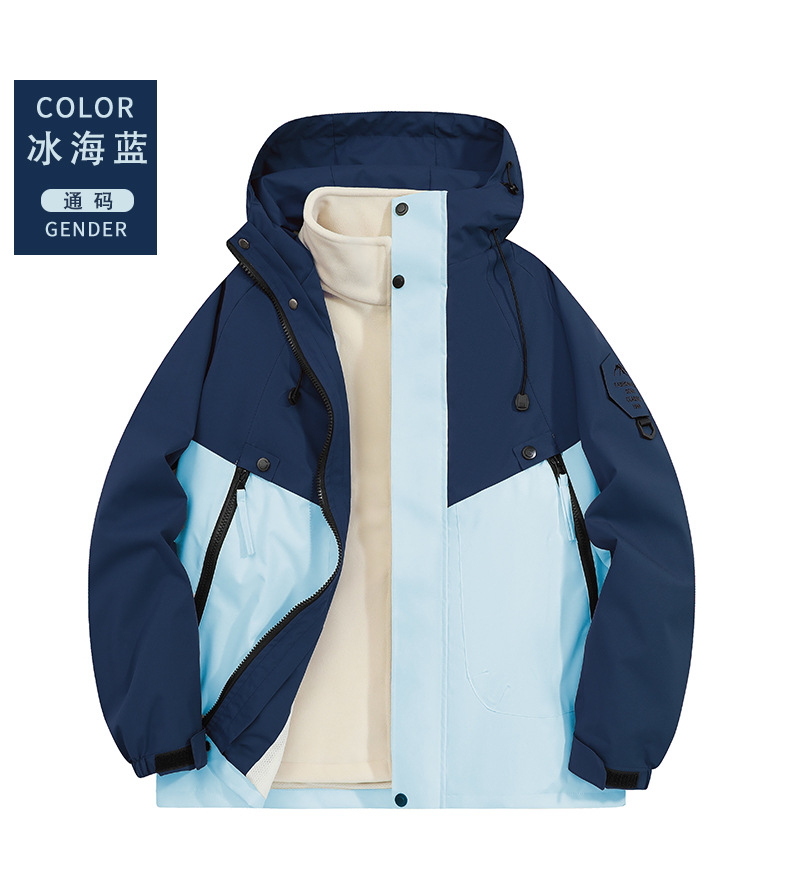 摇粒绒保暖内胆纯色连帽三合一冲锋衣情侣款KS1-962518通款