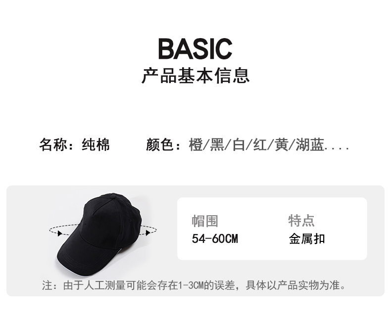 跨境外贸夏季防晒新款纯棉铜扣软顶水洗棒球帽